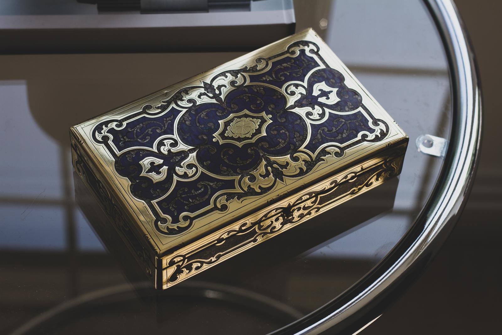 Striking Blue Enamel Boulle Sewing Box French 1860 (1 of 9)