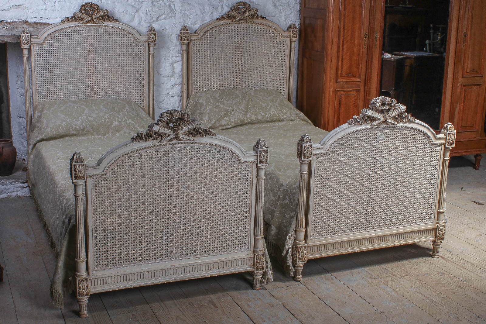 Striking Pair of Caned Empire Style Single Beds (1 of 1)