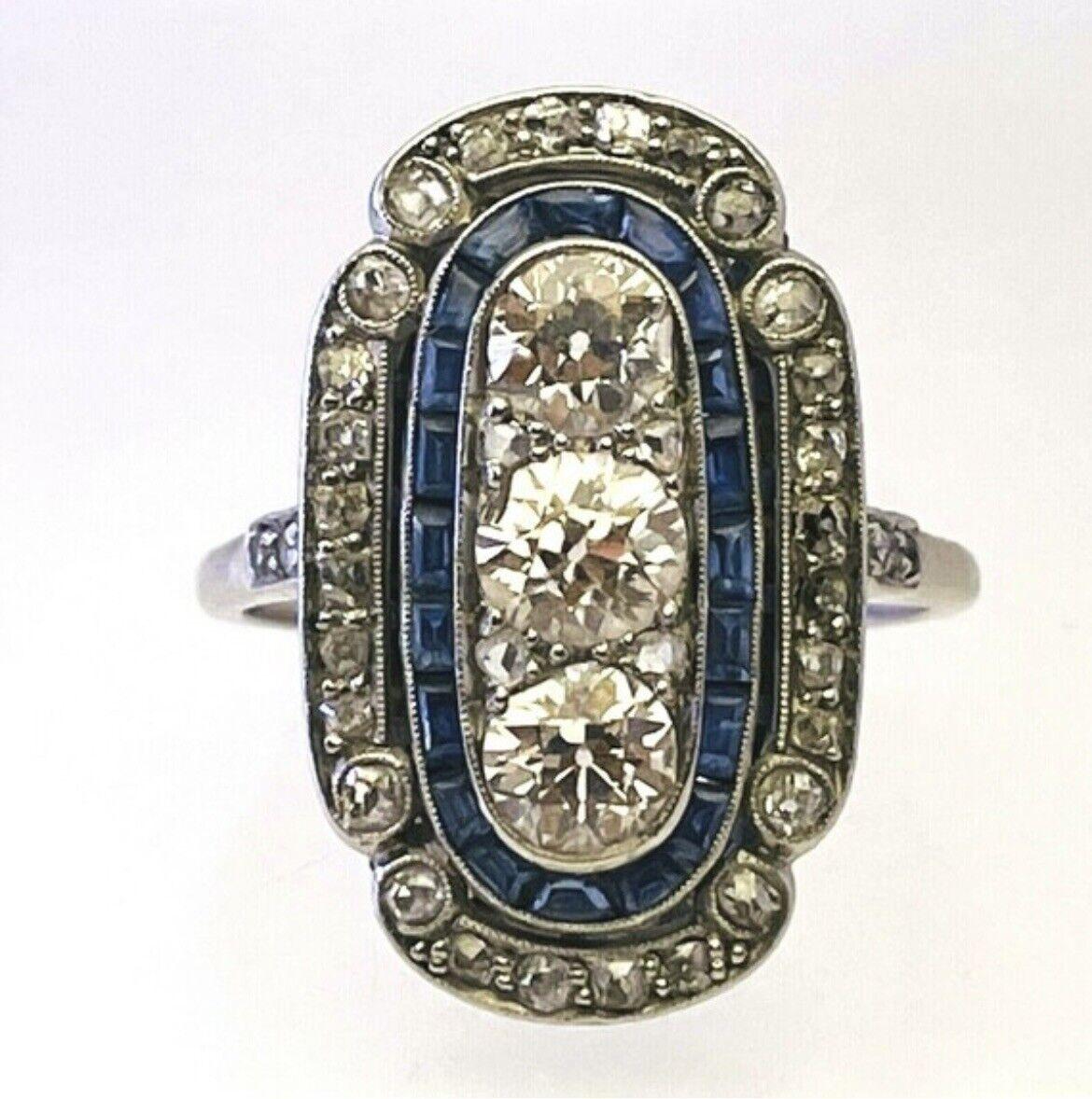 Striking Platinum & Diamond Trilogy Sapphire Ring