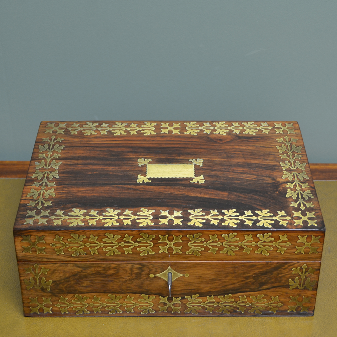 Striking Regency Rosewood & Brass Inlaid Antique Box