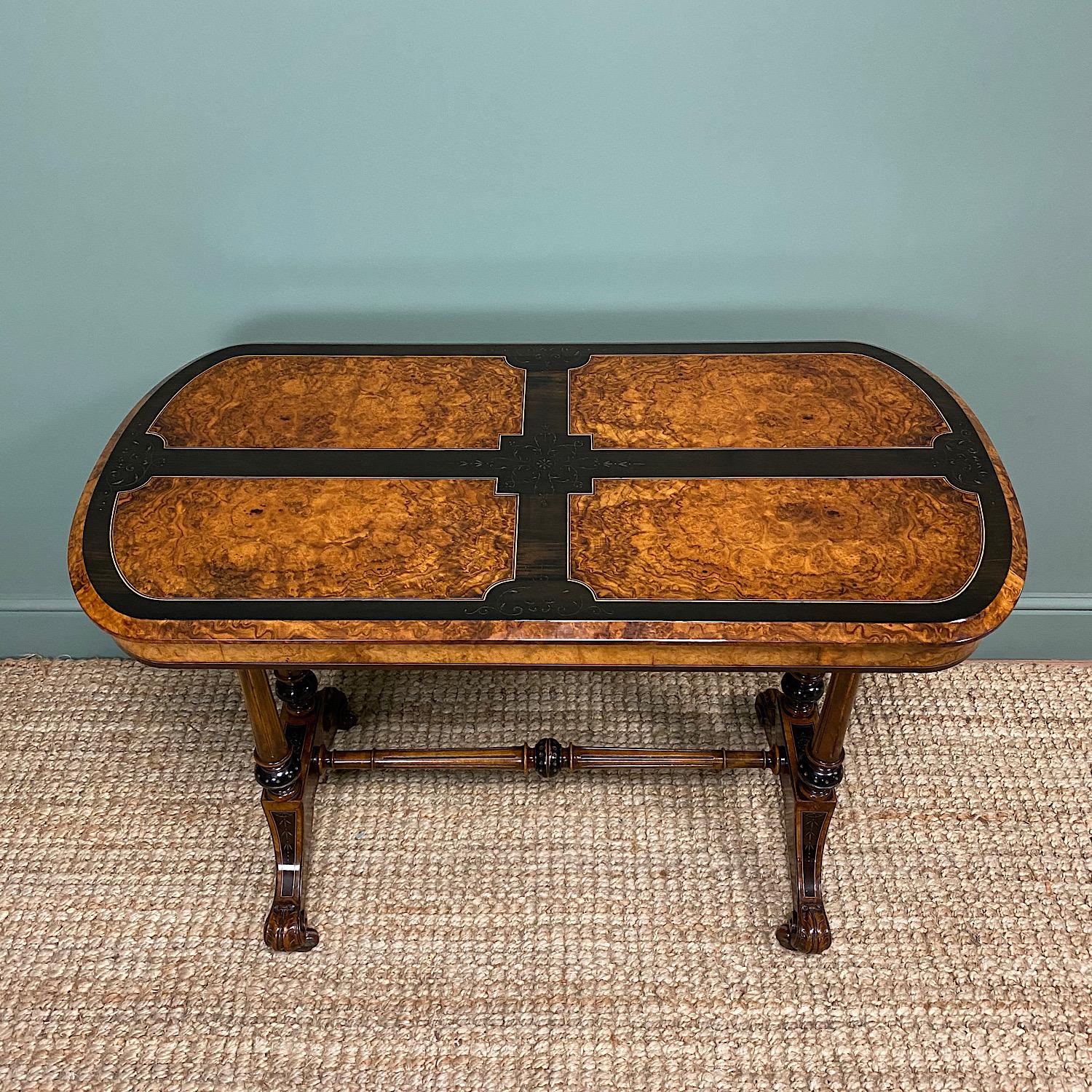 Striking Victorian Golden Burr Walnut & Ebonized Antique Centre Table