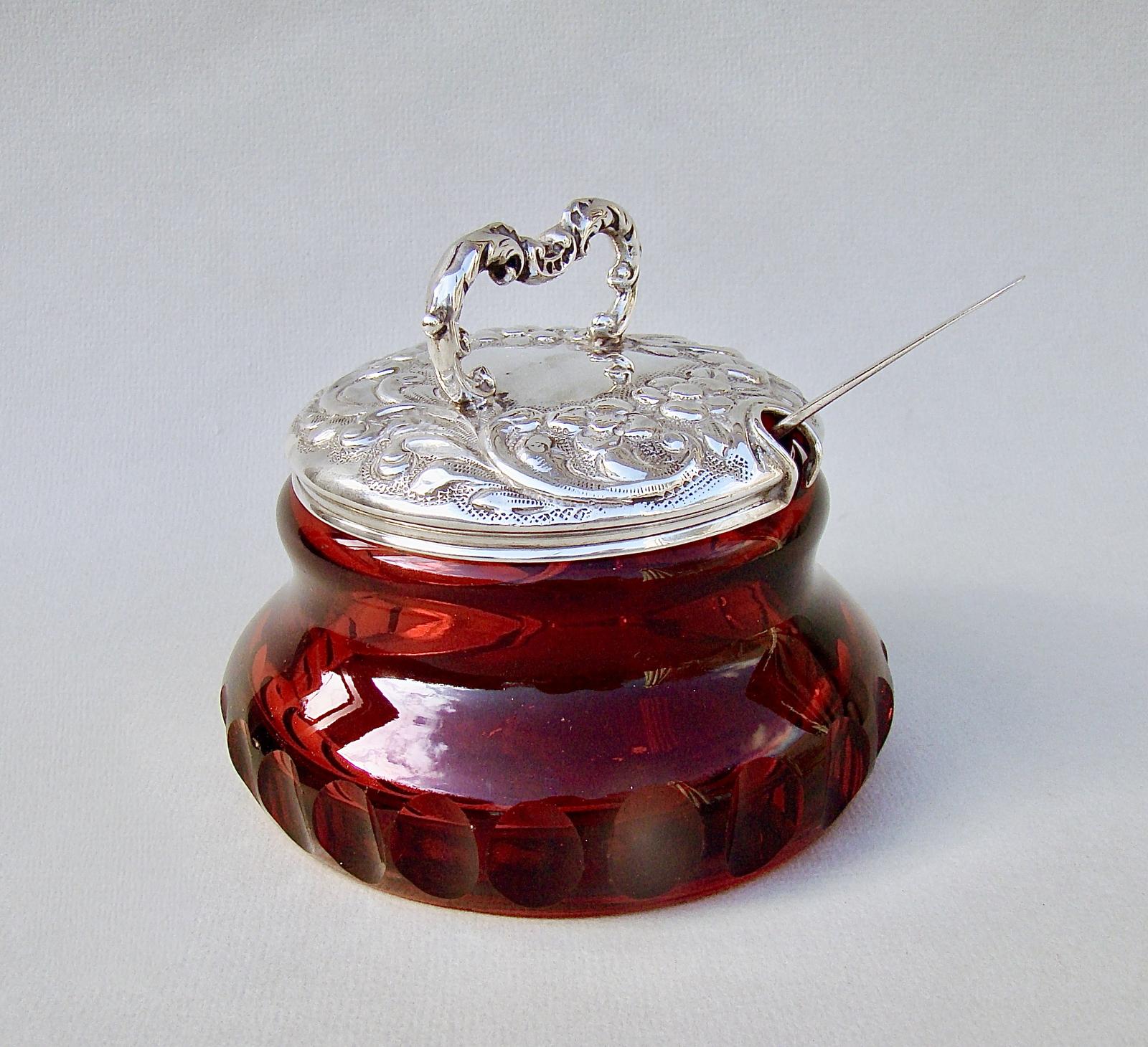 Striking Victorian Silver Mounted Ruby Glass Preserve Jar by Synyer & Beddoes, Birmingham 1899