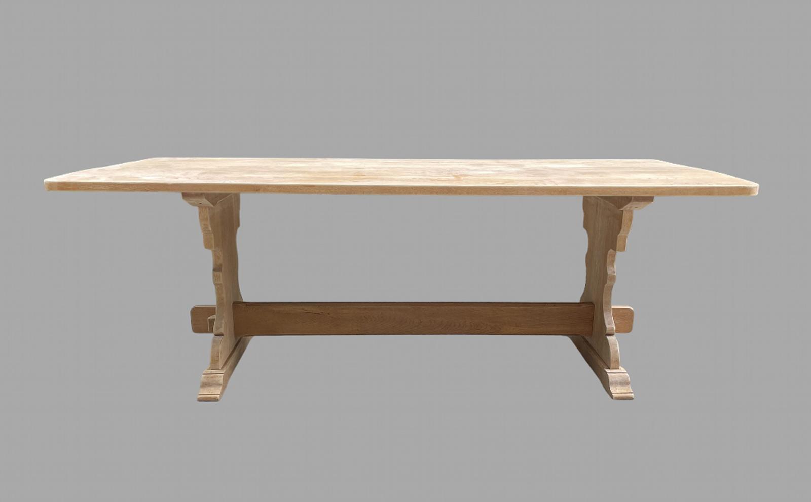 Stripped Mid Century Oak Trestle Farmhouse Table