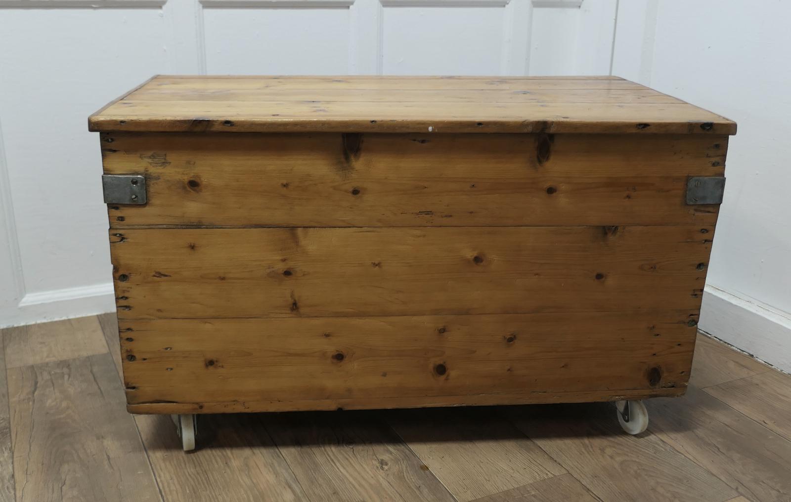 Strong Victorian Pine Blanket Box Set on Wheels