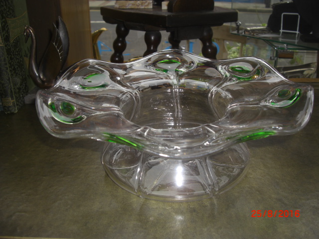 Stuart & Sons Edwardian Glass Peacock Trails / Cairngorm Large Bowl