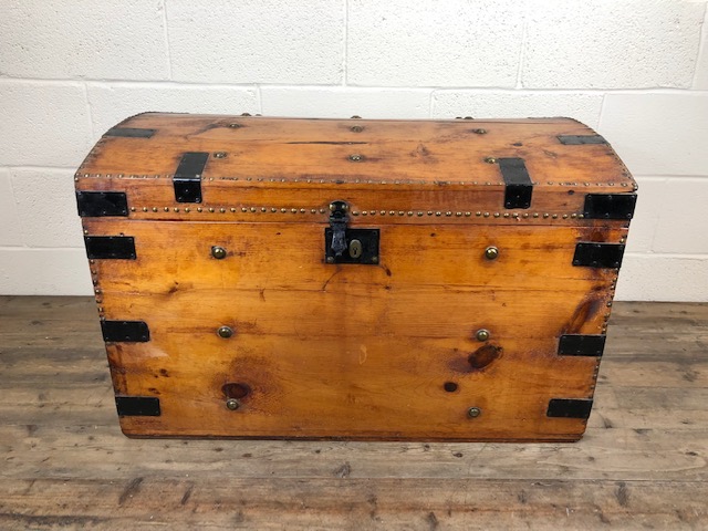 Studded Vintage Pine Dome Top Trunk (1 of 1)