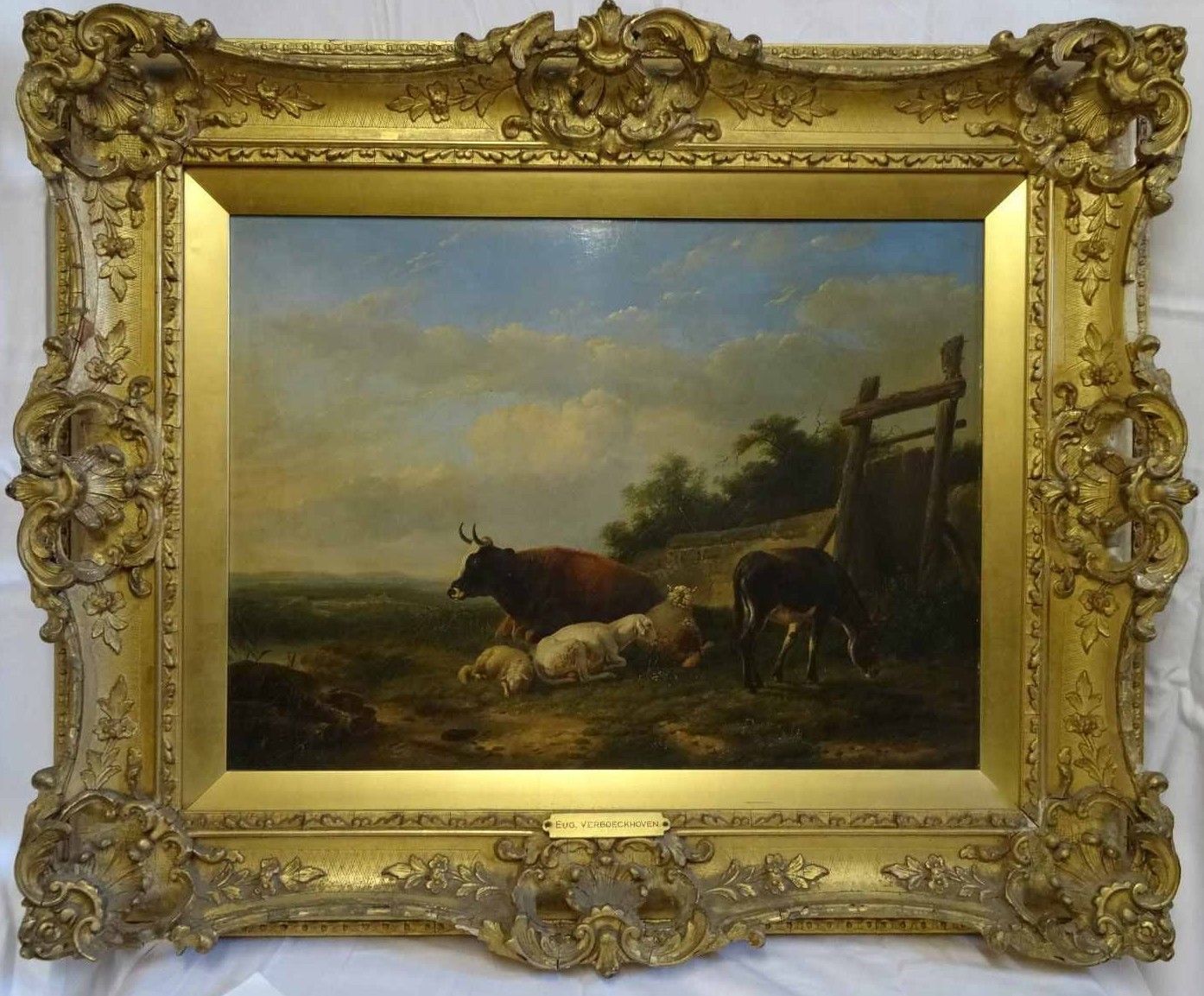 'Study of Livestock' a Mid 19th Century Oil On Canvas Painting by Eugene Verboeckhoven