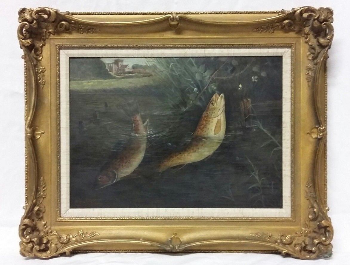 'Study of Snagged Trout' a 19th Century Oil On Board Painting Signed A.Roland Knight