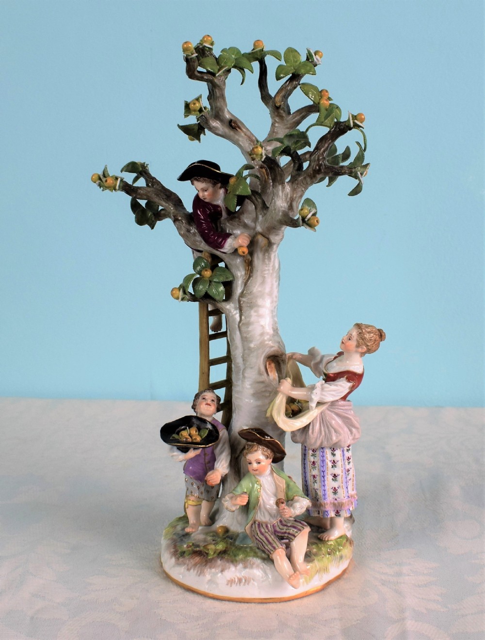 Stunning 11" Meissen Figure Group the Apple Pickers Porcelain Antique C.1880