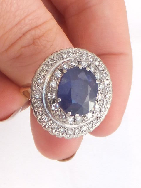 Stunning 1.1ct Diamond 4.25ct Sapphire 18ct Gold Art Deco Period Ring