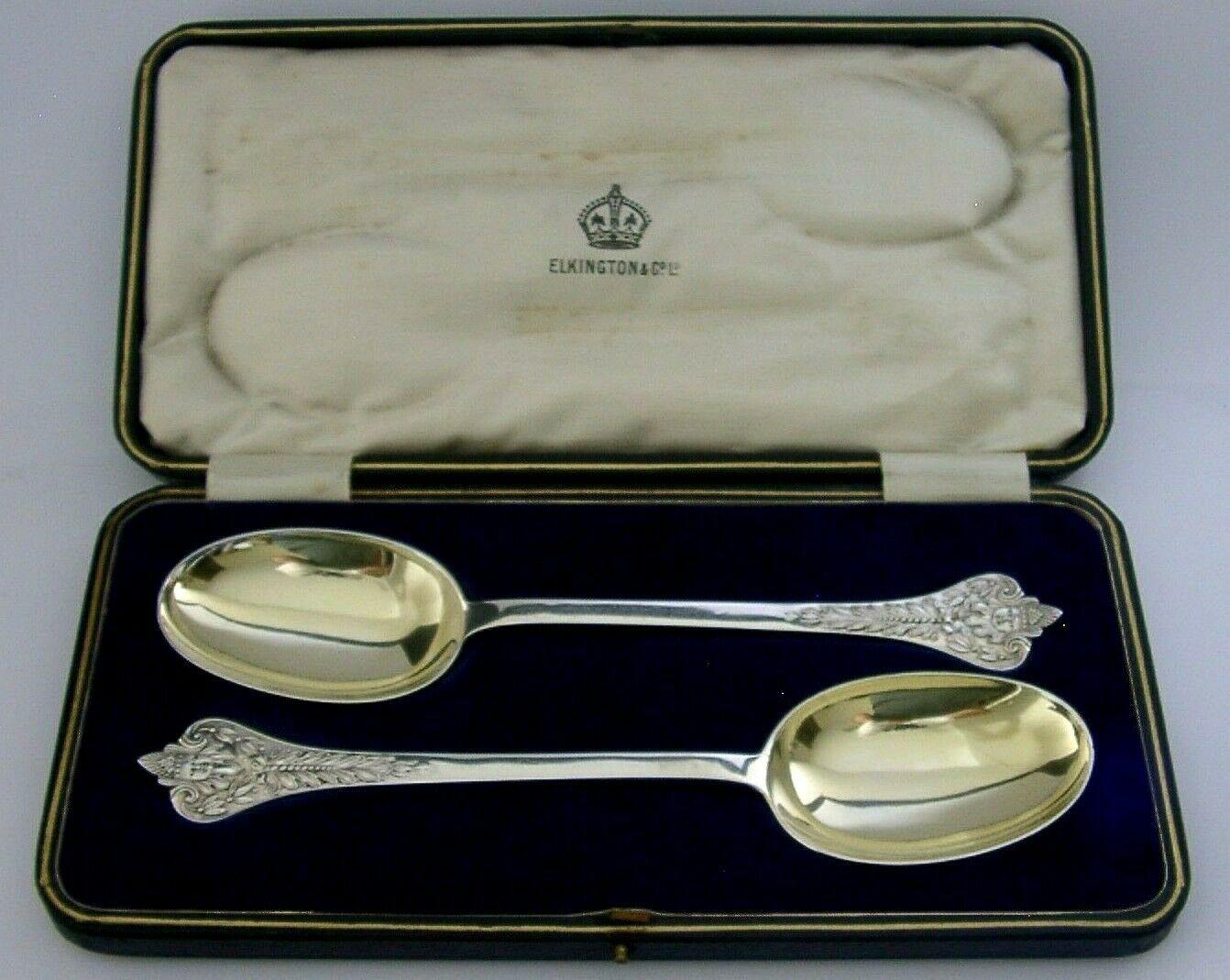 Stunning 172g English Sterling Silver Serving Spoons Antique Cased