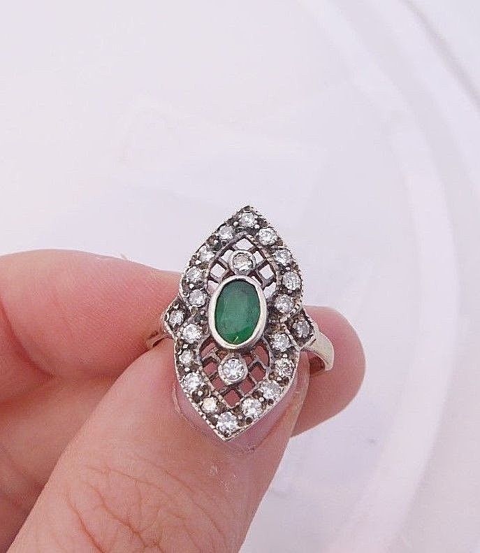 Stunning 18ct Gold 0.75ct Diamond & Emerald Art Deco Cluster Ring