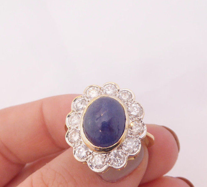 Stunning 18ct Gold 5ct Sapphire 1.2ct Diamond Ring