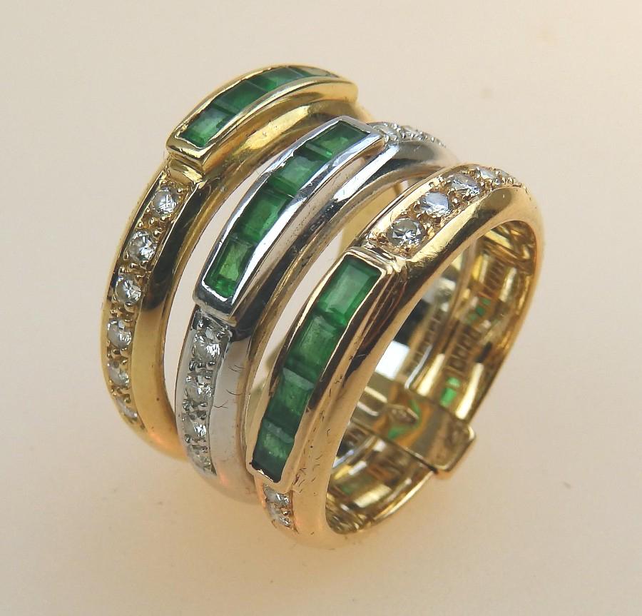 Stunning 18ct Gold, Diamond & Emerald Ring 17/n in Original Box 20th Century