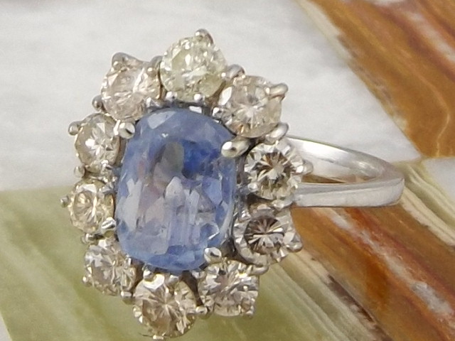 Stunning 18ct White Gold 1.6ct Diamond & 1.6ct Cornflower Blue Sapphire Ring