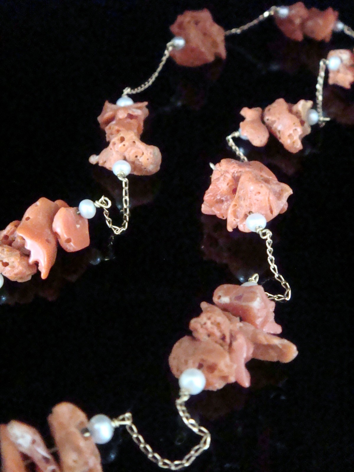 Stunning 18ct Yellow Gold Natural Coral & Pearl Chain