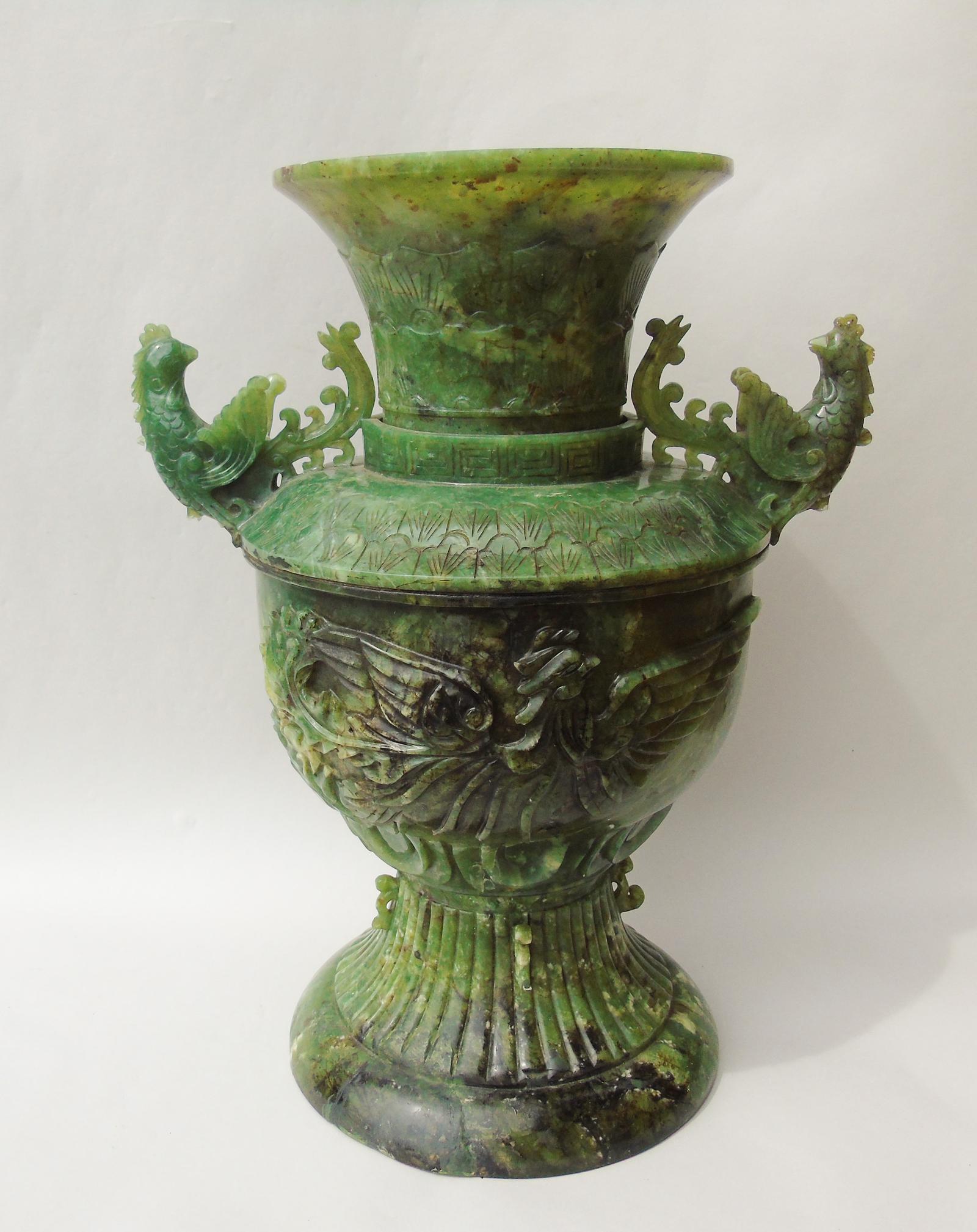Stunning 19th Century Chinese Carved Hardstone / Jade Phoenix Vase (1 of 10)