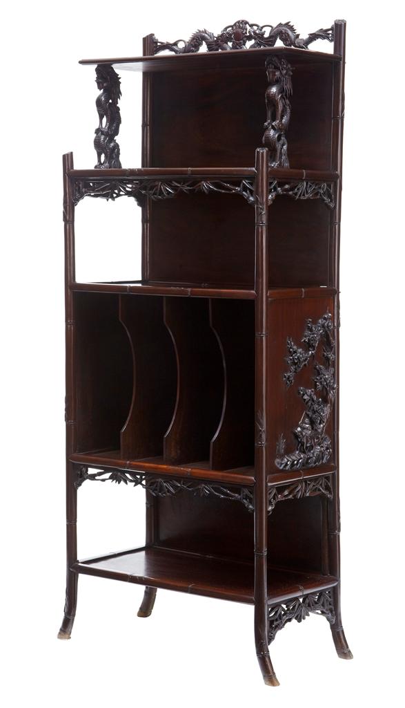 Stunning 19th Century Chinese Carved Hardwood Open Cabinet c.1890