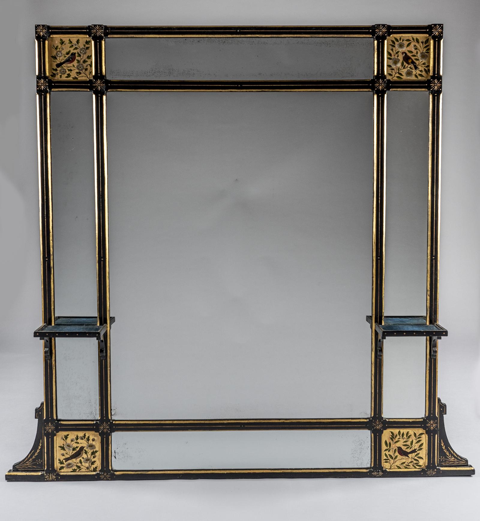 Stunning 19th Century English Ebonized & Gilt Overmantle Mirror