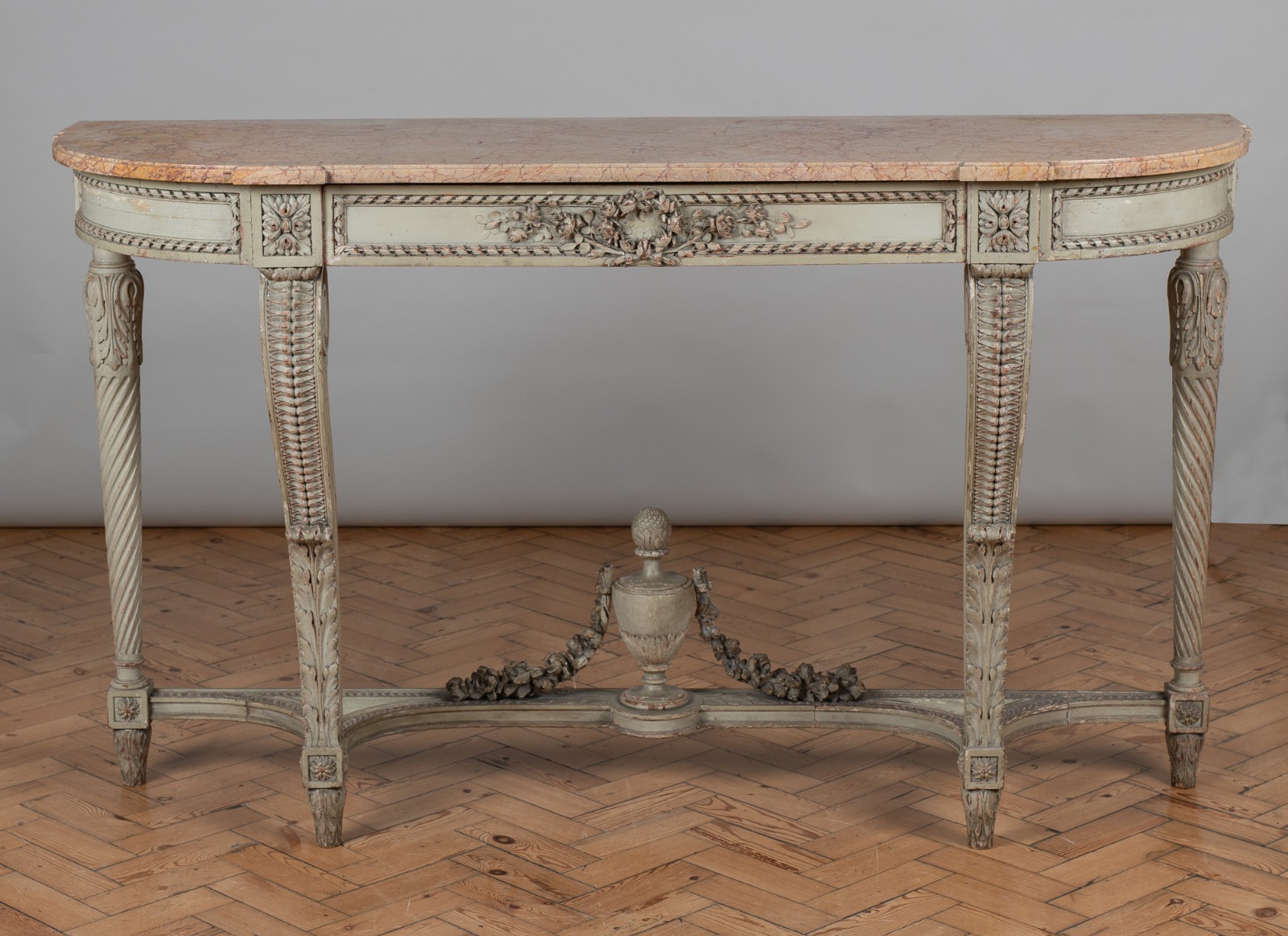 Stunning 19th Century Large French Louis Xv1 Style Painted Carved Wood Console Table with a Marble Top (1 of 1)