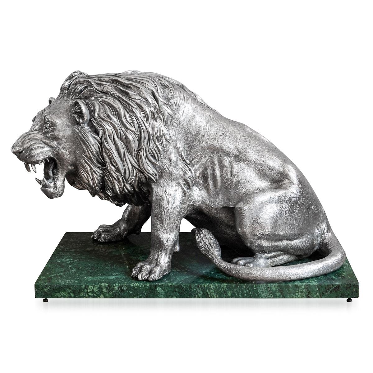 Stunning 20th Century Italian Solid Silver Statue Of A Lion On Marble Base c.1970
