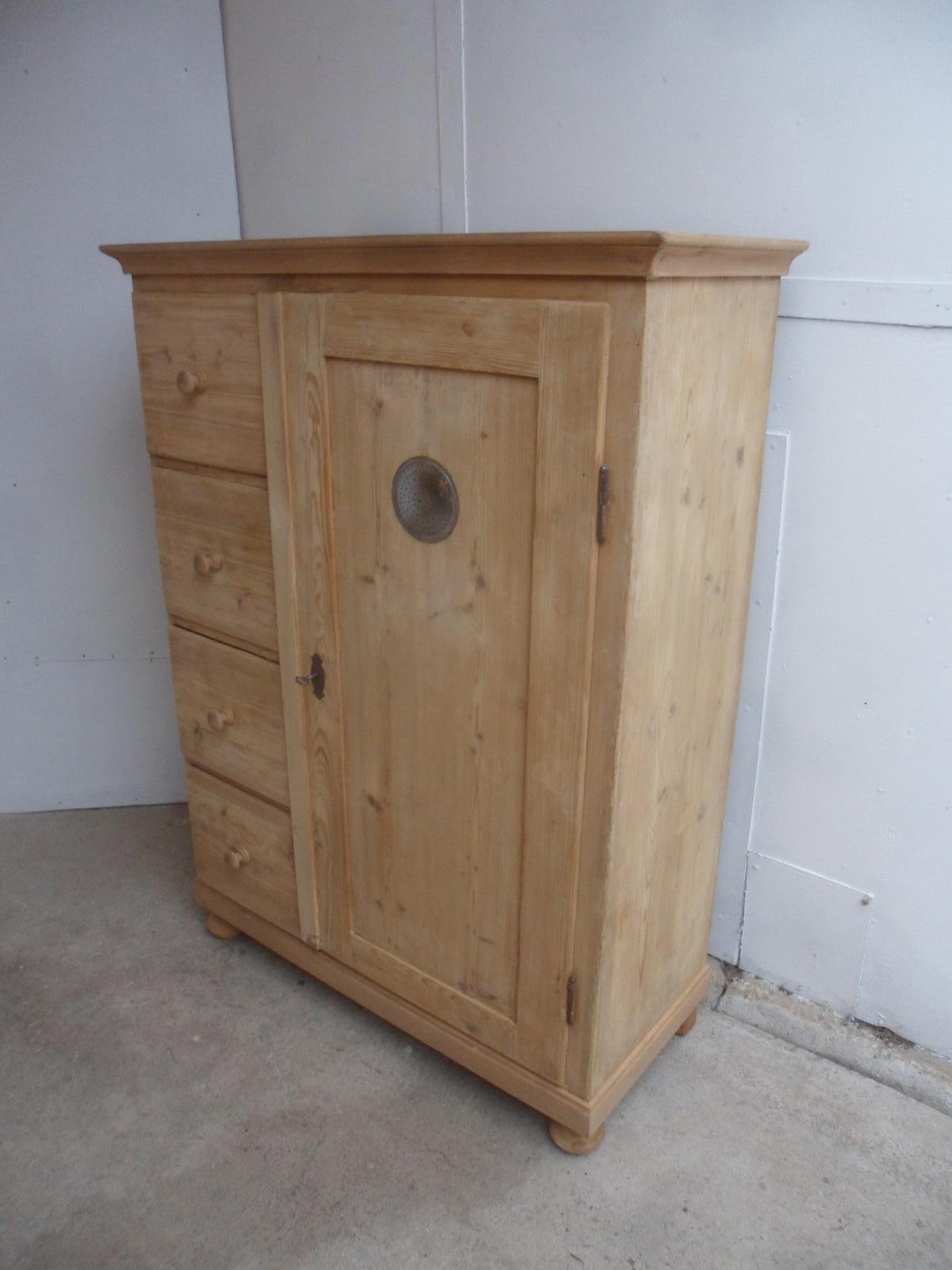 Stunning 4 Drawer 1 Door Antique Pine Kitchen / Storage Cupboard to wax / paint