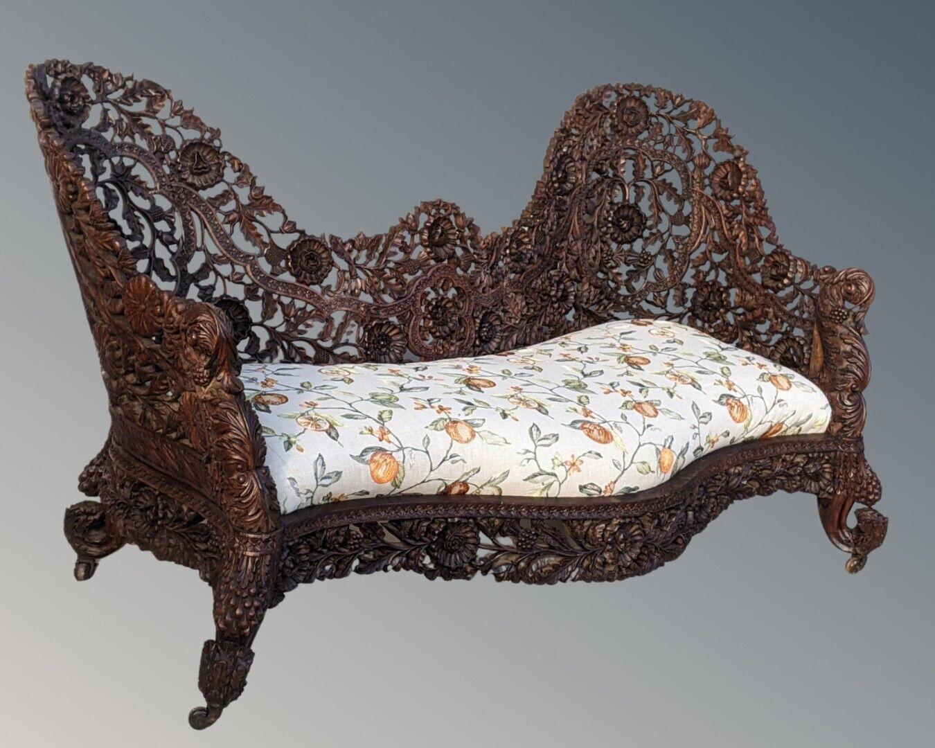 Stunning Anglo Indian Carved Bombay Sofa (1 of 12)