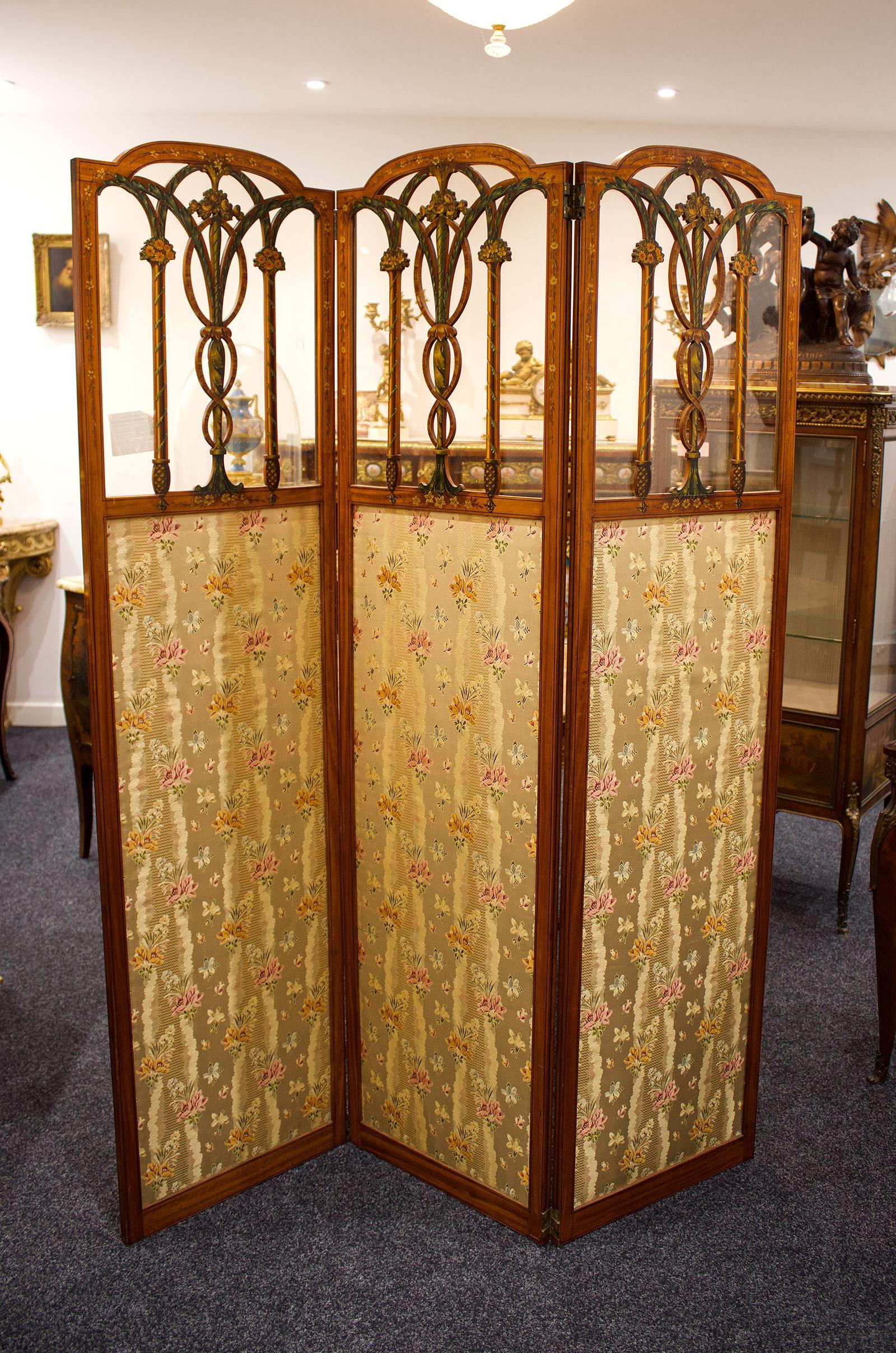 Stunning Antique 3 Fold Satinwood Painted Screen / Room Divider (1 of 7)