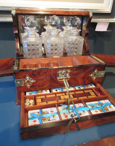 Stunning Antique Burr Walnut Tantalus & Games Box