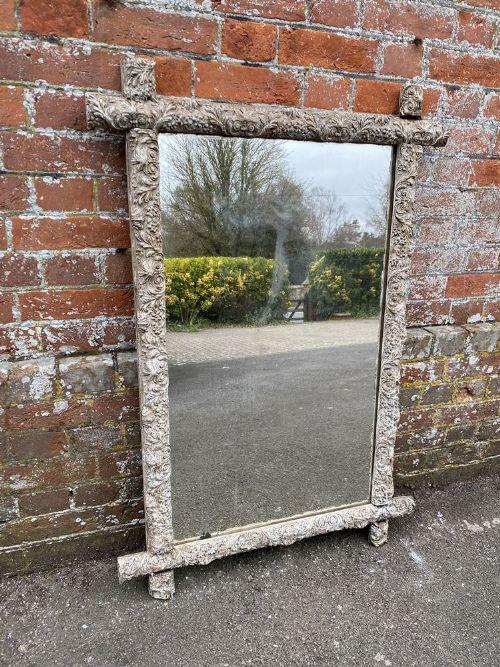 Stunning Antique French 19th Century Carved Wood & Gesso Ornate Framed Painted Cross Mirror