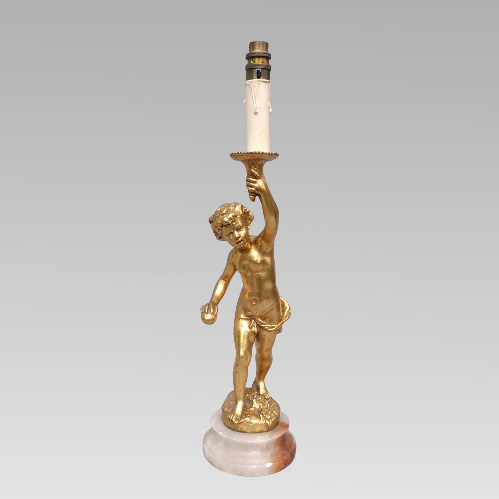 This Stunning Antique Gold Gilt Cherub Putti Figure Louis Style Table Lamp on Marble is located in Berkshire, United Kingdom