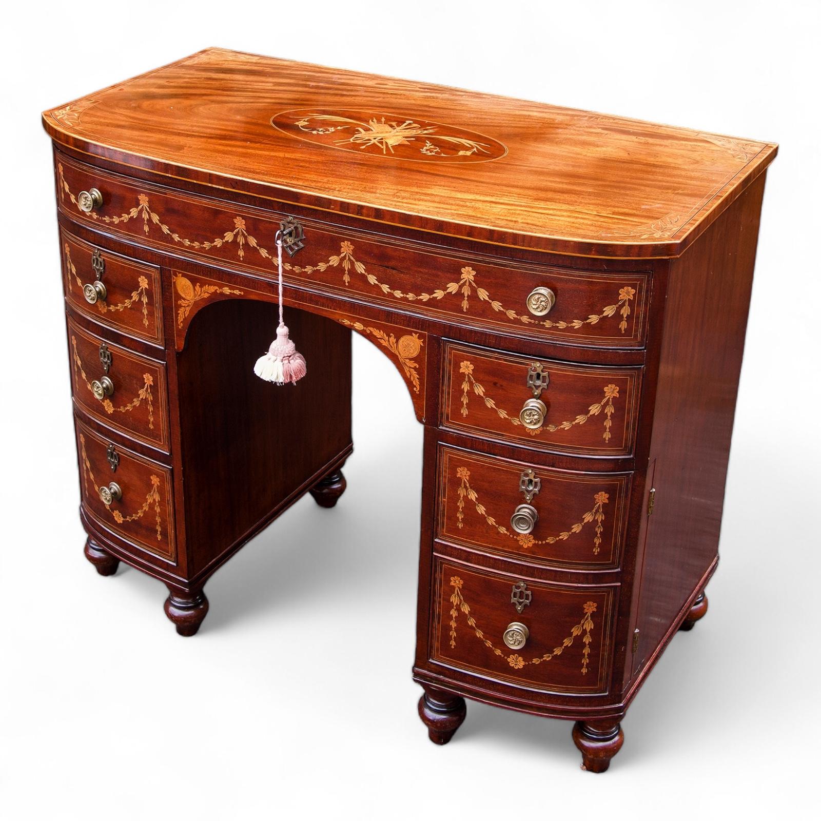 Stunning Antique Mahogany Marquetry Inlaid Sideboard / Desk by Edwards & Roberts