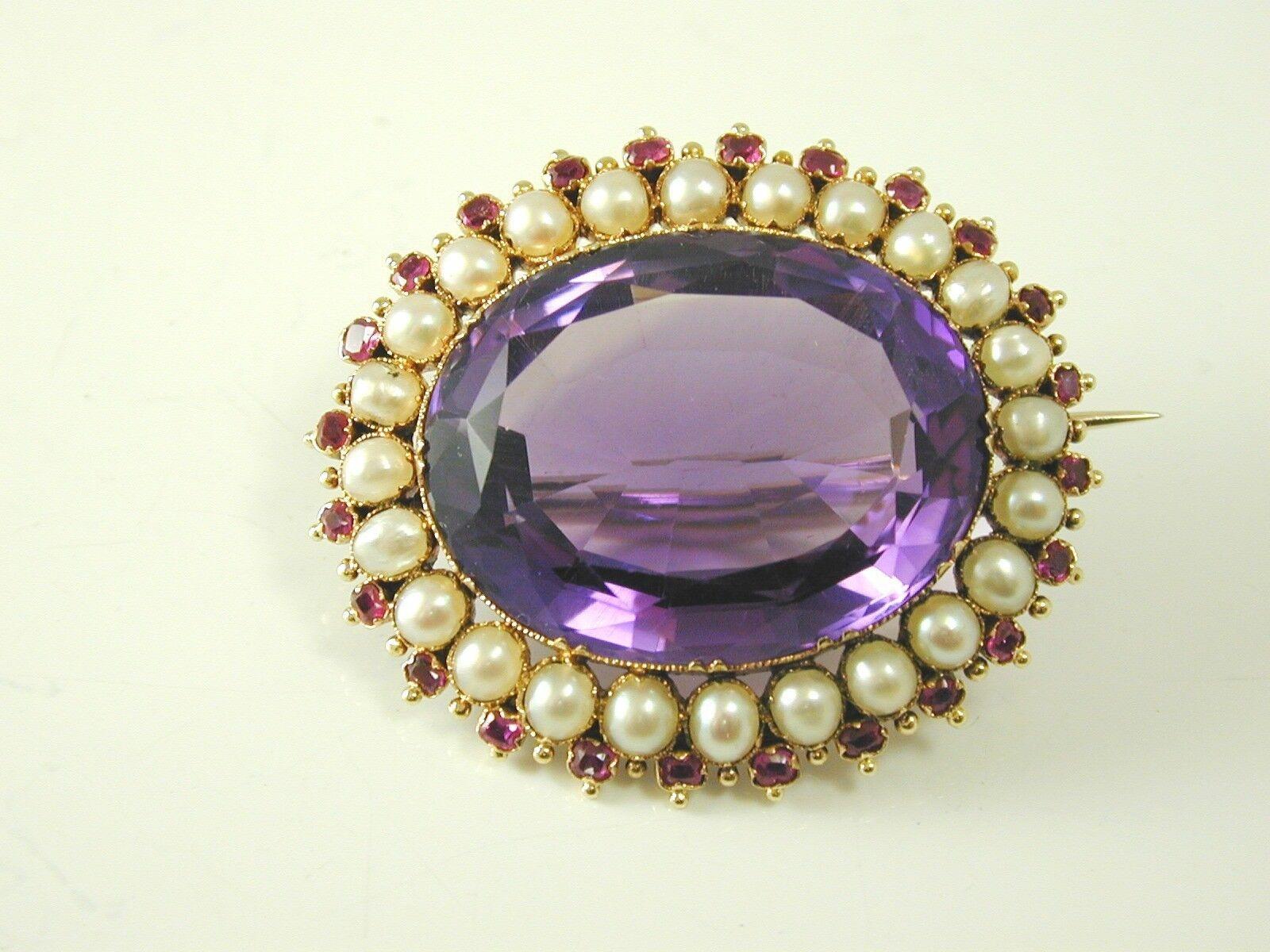 Stunning Antique Victorian 15 Carat Gold Amethyst Brooch