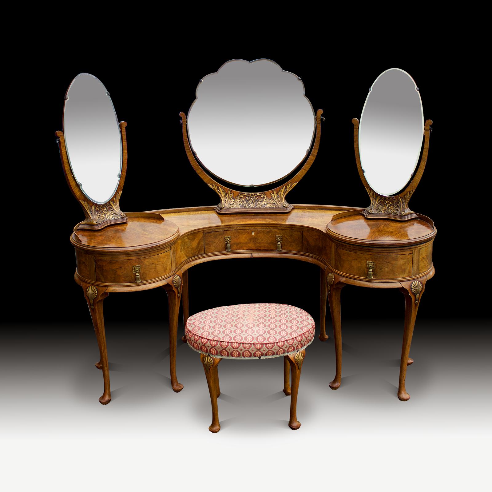 Stunning Antique Walnut Kidney Shaped Mirror Back Dressing Table & Stool (1 of 9)
