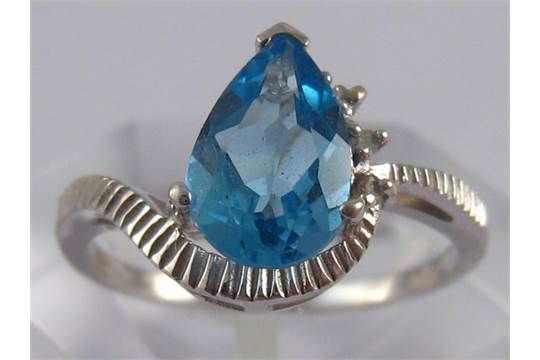 Stunning Art Deco 14ct White Gold Topaz & Diamond Ring