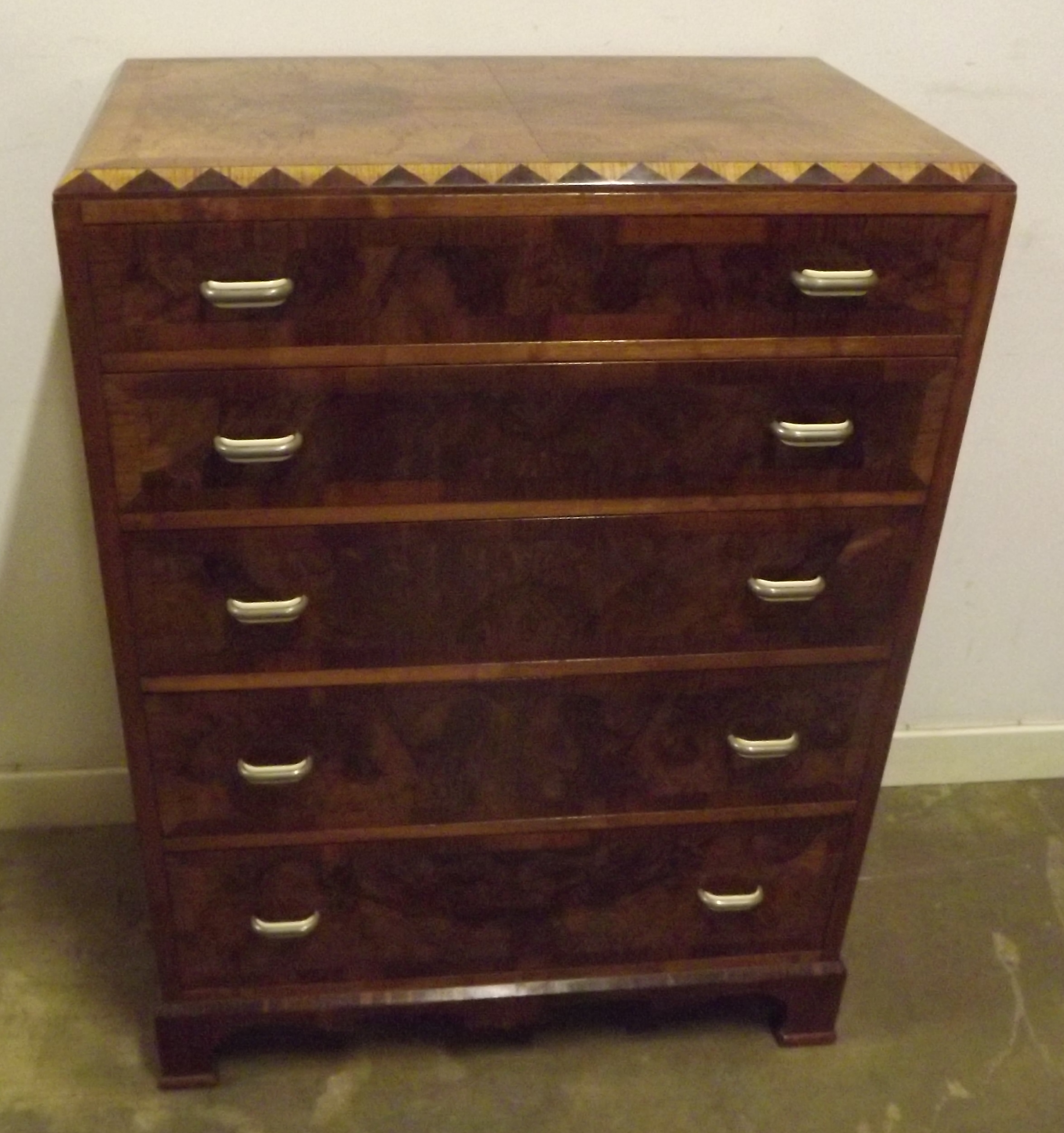 Stunning Art Deco Chest of Graduated Drawers with Walnut Veneers c.1920s