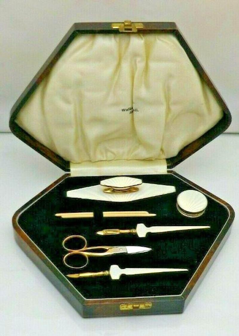 Stunning Art Deco Enamel Solid Silver & Gold Gilt Manicure Set