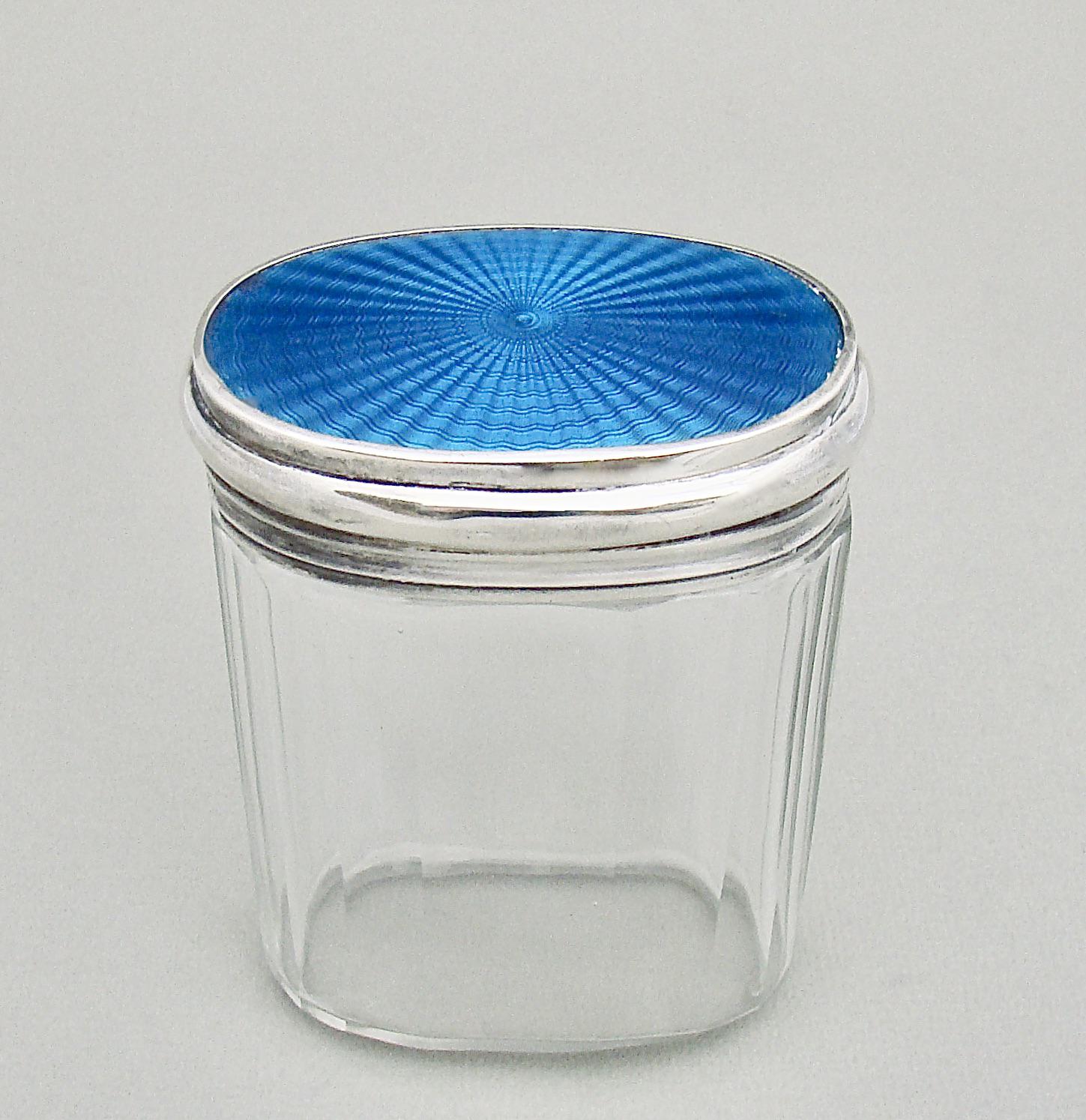 Stunning Art Deco Silver & Guilloche Enamel Dressing Table Jar by The Adie Brothers, Birmingham 1923