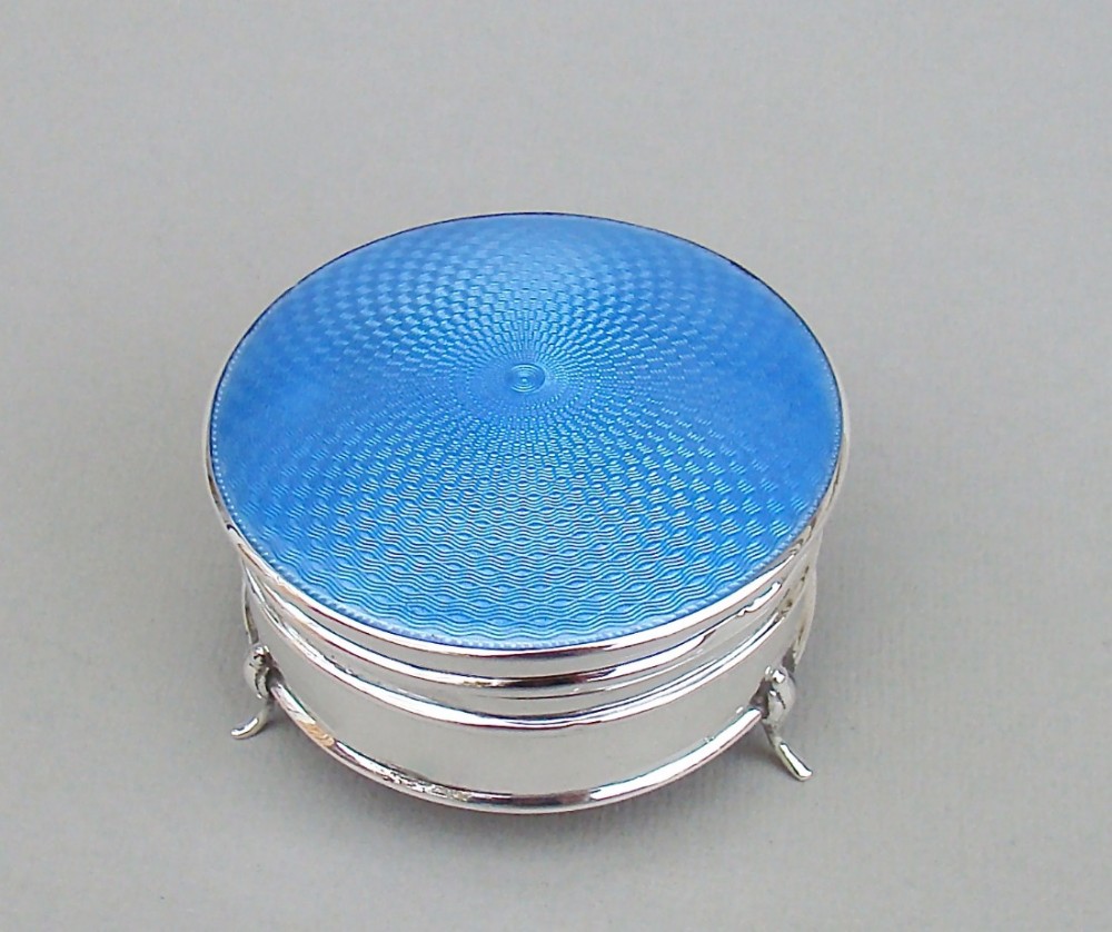 Stunning Art Deco Silver & Guilloche Enamel Jewellery Box by Alexander Clark & Co, Birmingham 1925
