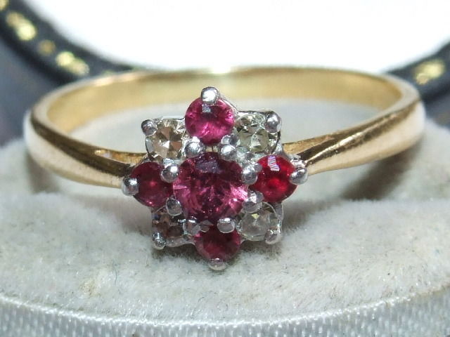Stunning, Art Deco Solid 18ct Gold & Platinum Natural Diamond & Ruby Ring