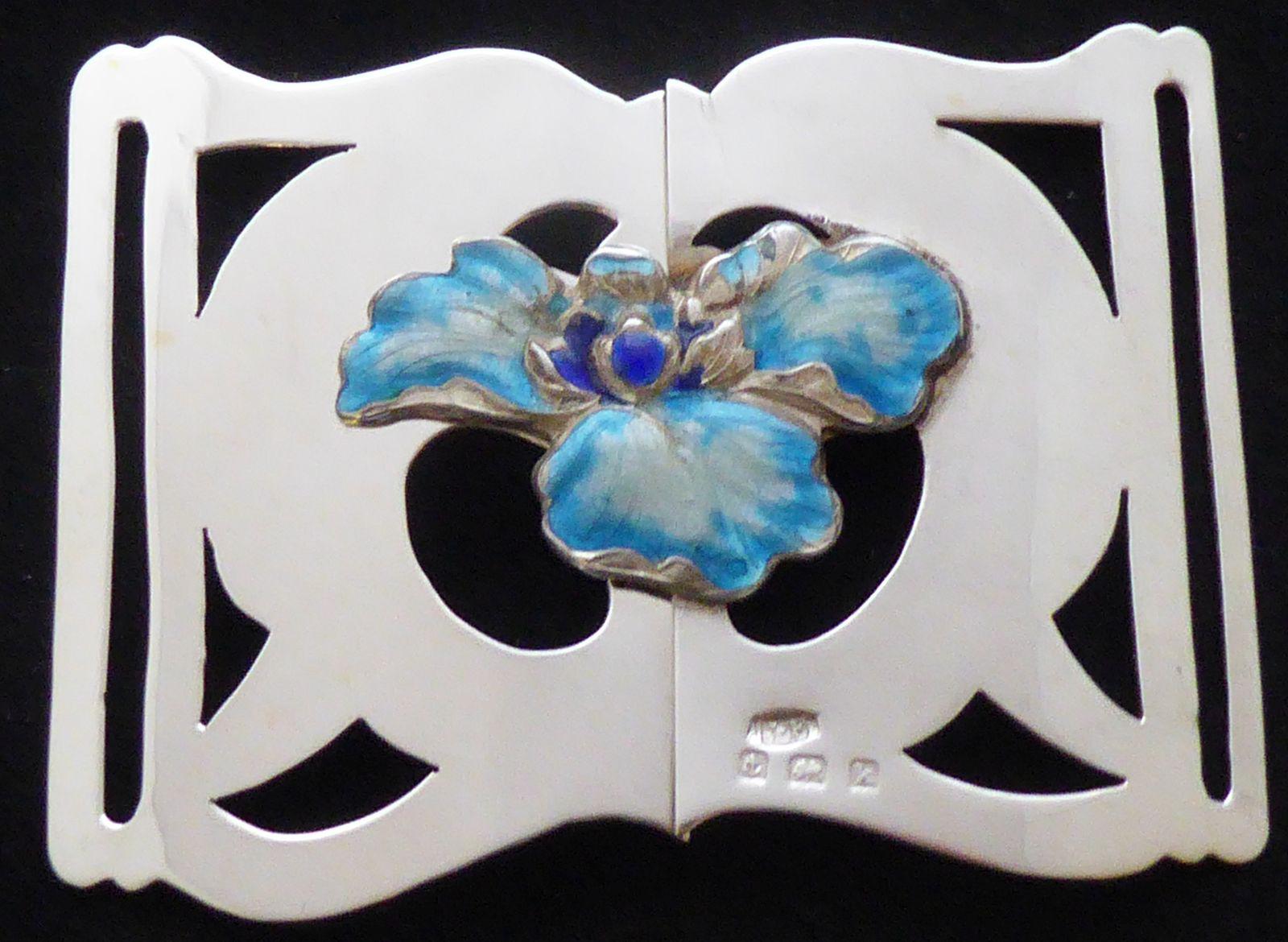 Stunning Art Nouveau 1905 Enamel & Hallmarked Solid Silver Nurses Belt Buckle