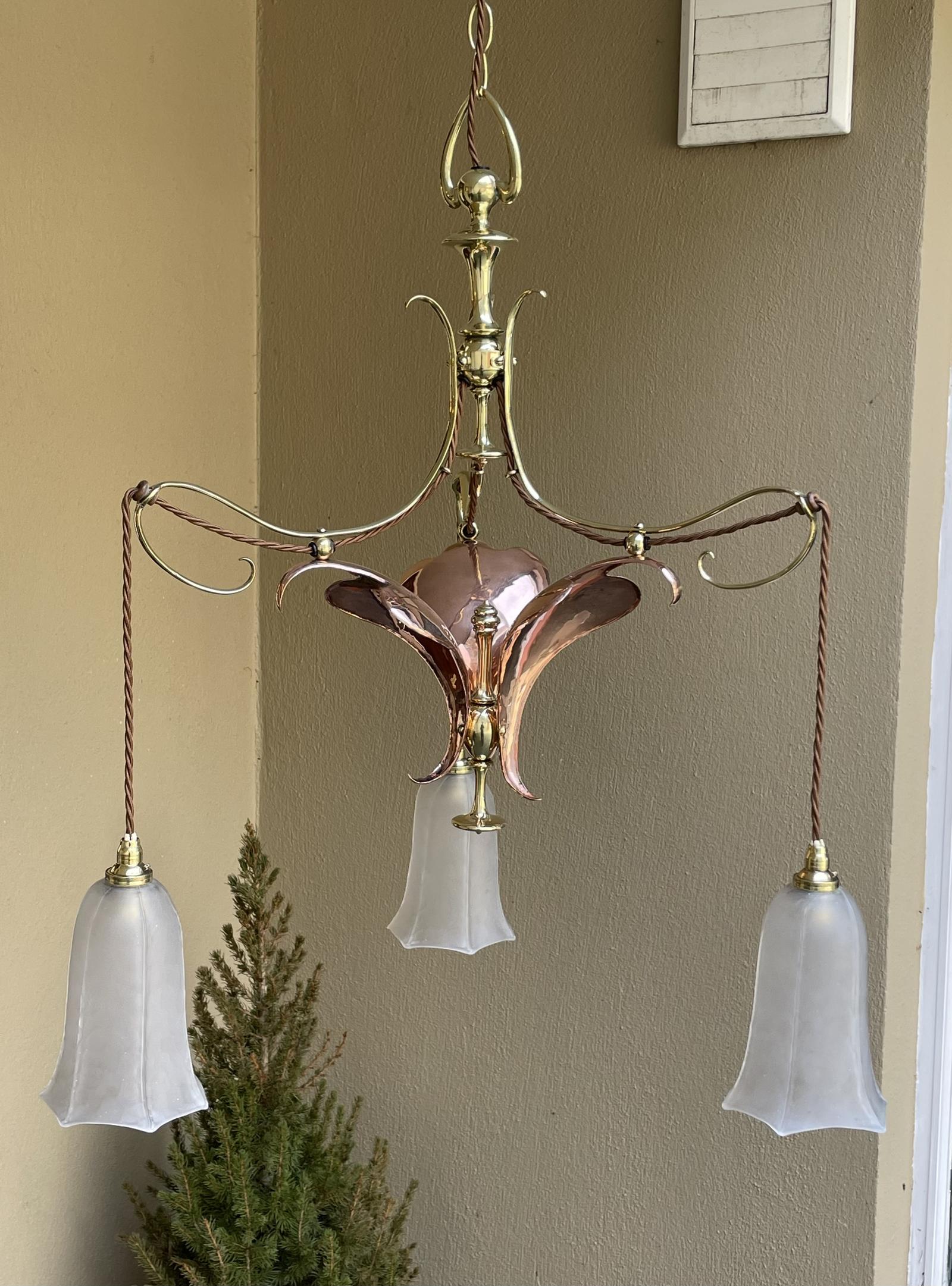 Stunning Art Nouveau & Copper Chandelier