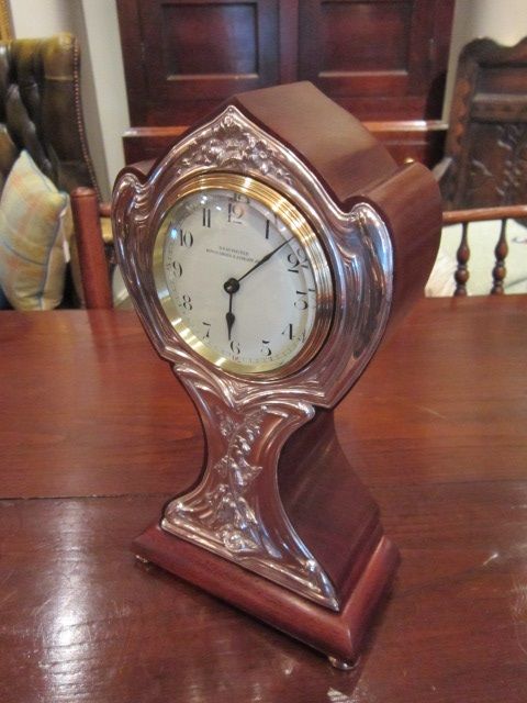 Stunning Art Nouveau Silver Front Mantel Clock 1909