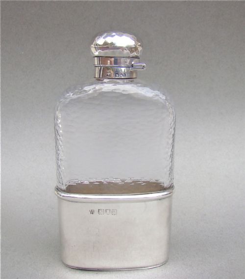 Stunning Arts & Craft Solid Silver Hip Flask by William Neale & Sons, London 1900