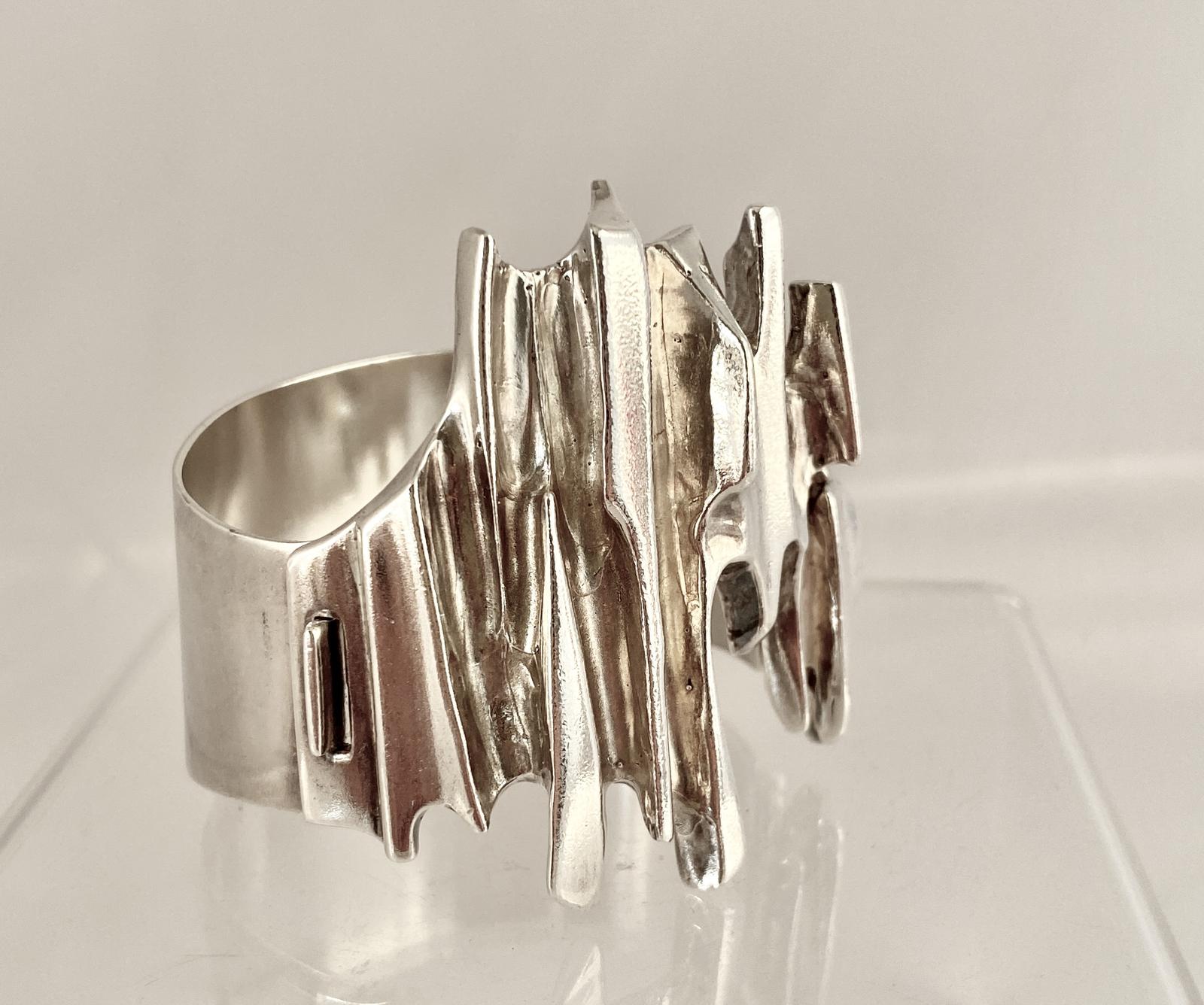 Stunning Brutalist Solid Silver Bracelet Cuff Bangle c.1960