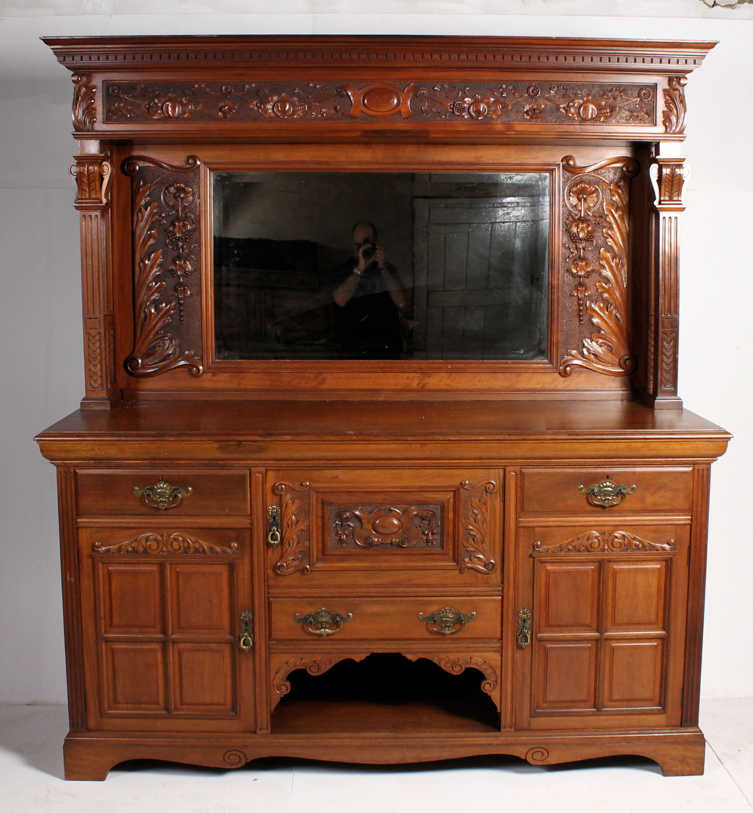 Stunning C19th Antique Victorian Walnut Carved Maple & Co Mirror Back Sideboard