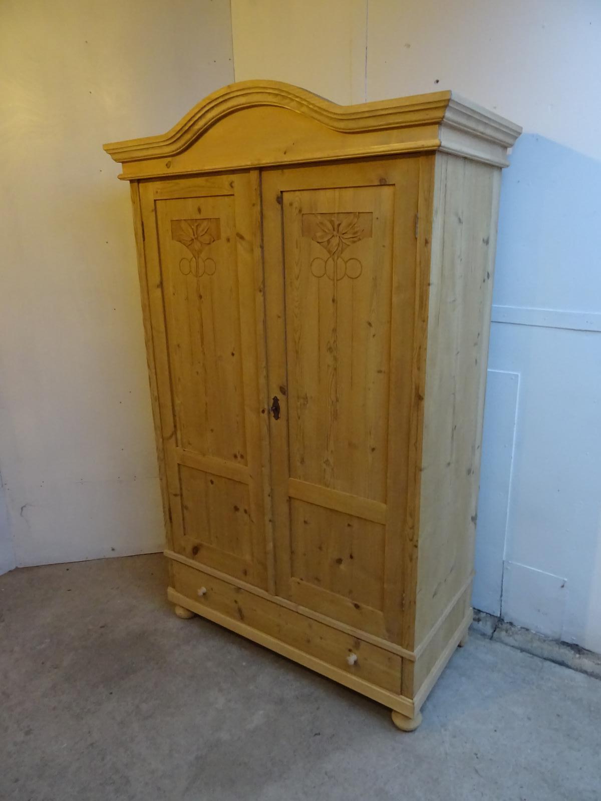 Stunning Carved Art Nouveau Antique Pine Wardrobe to Wax / Paint