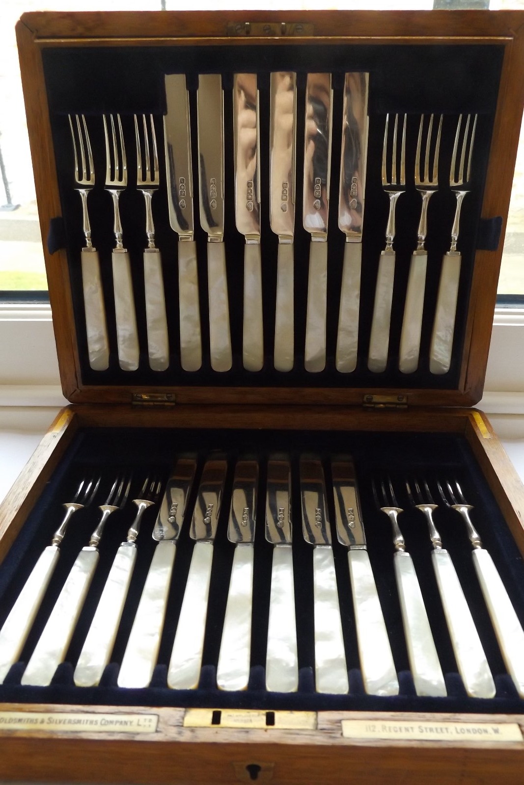 Stunning Cased Set of Edwardian Silver & Mop Dessert Knives & Forks
