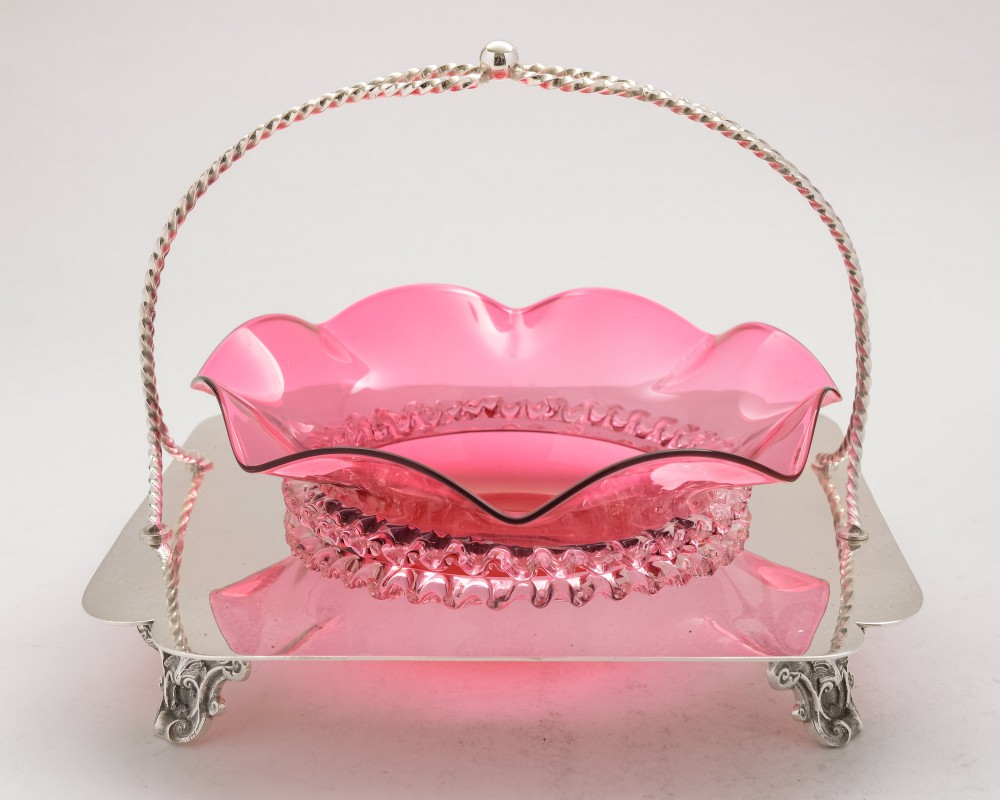 Stunning Cranberry Glass Dish in Silver Plated Stand c.1905