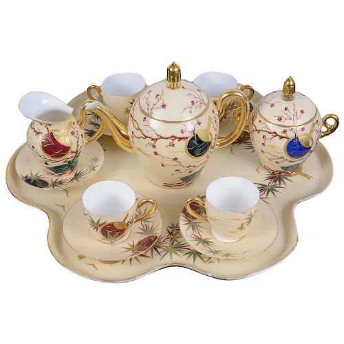 Stunning Early 20th Century Hand Painted Limoges Porcelain Cabaret Set